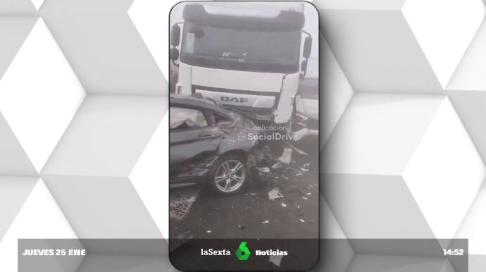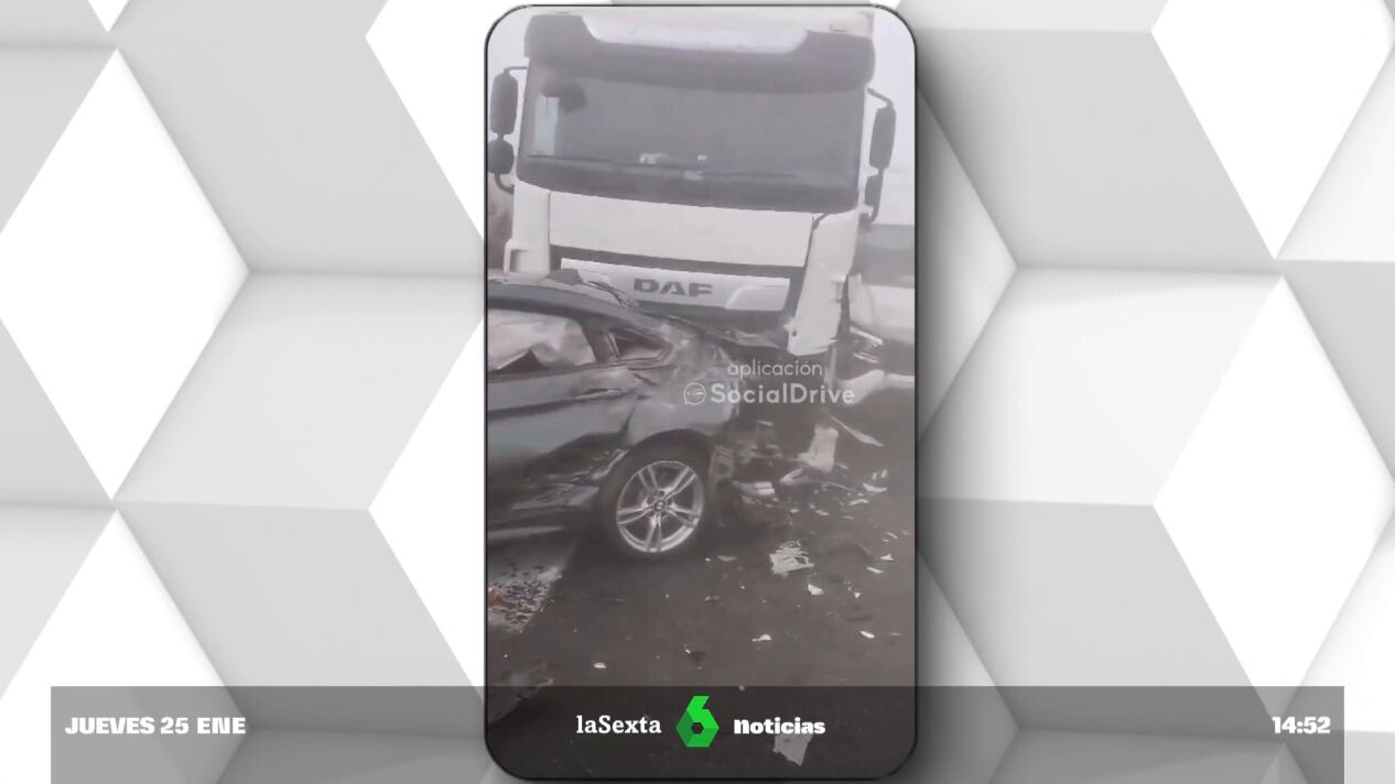 La densa niebla que cubría gran parte de la carretera ha ocasionado diversas colisiones en cadena en las que se han visto implicados varios camiones, furgonetas y un gran número de turismos, y han ocasionado numerosos heridos de diversa consideración.