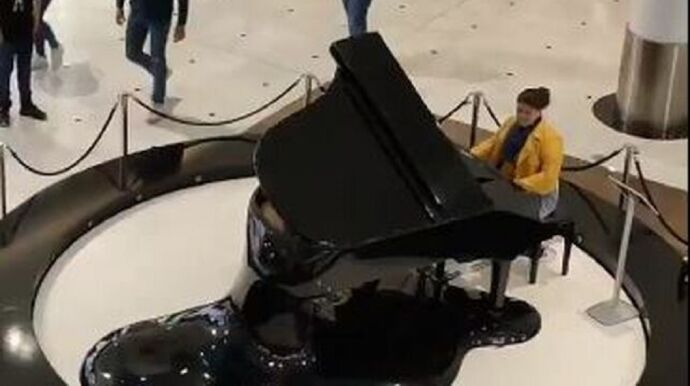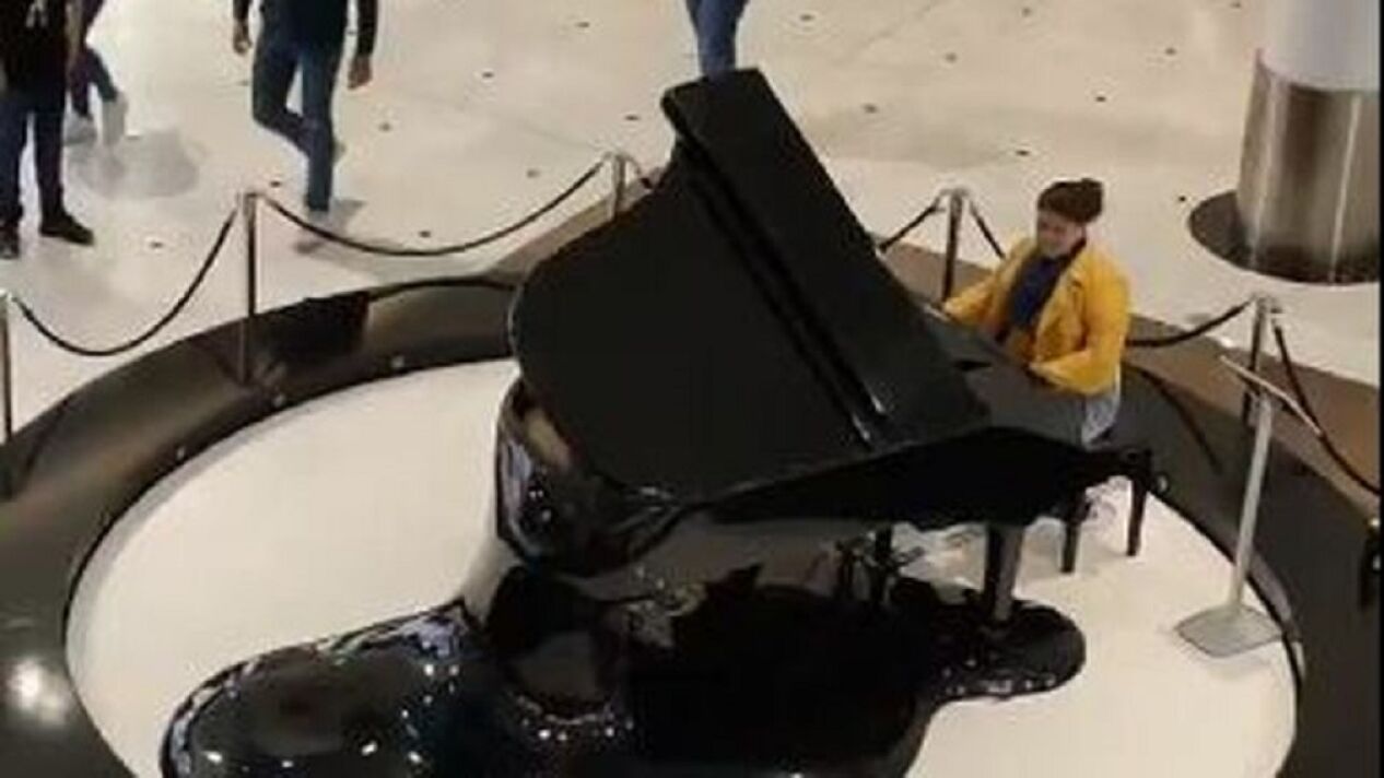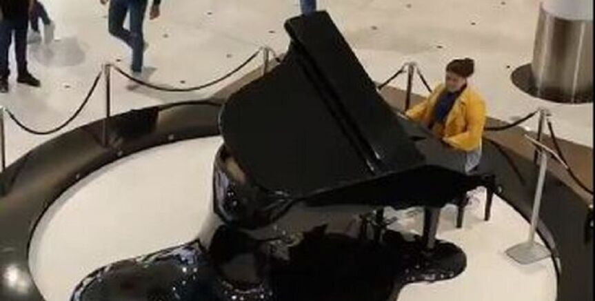 El piano en cuestión está disponible para quien desee tocarlo, y suelen acercarse a probarlo diferentes jóvenes, niños y estudiantes de piano. Lo que no es tan frecuente es escuchar a alguien, en este caso una mujer de mediana edad, tocar el himno falangista de forma espontánea.