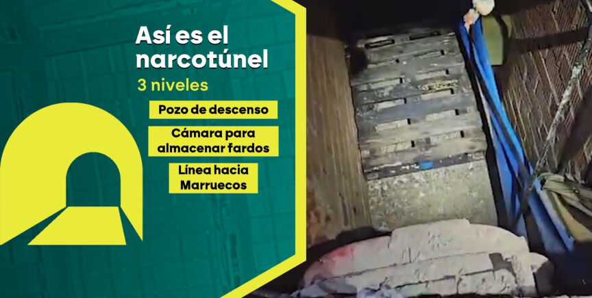 En el vídeo que acompaña a esta noticia se pueden ver las imágenes del momento en el que los agentes irrumpieron en el narcotúnel. Es el segundo de este tipo, que funciona como una línea directa entre Ceutay Marruecos, que encuentra en apenas un año.