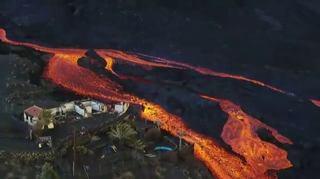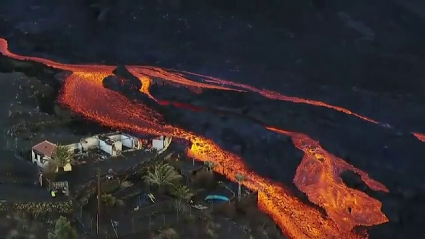 Cientos de personas han tenido que dejar sus casas y más de 2.000 edificaciones han desaparecido. La lava se extiende ya por más de 900 hectáreas de la isla, un 7% del terreno total de La Palma. Y el volcán sigue rugiendo, con una gran emanación de material piroclástico y lava.