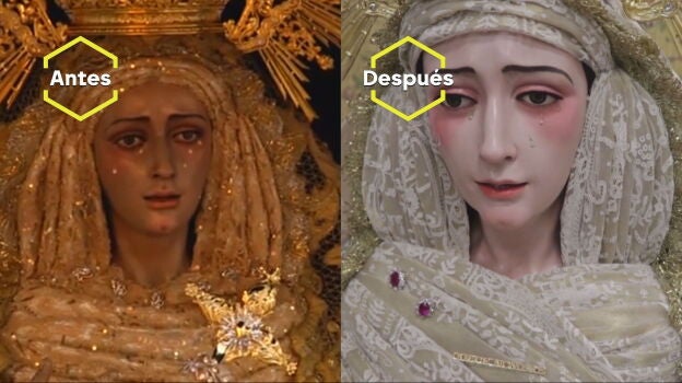 De hecho, desde la Hermandad piden "de momento, cautela", puesto que ello ya han "hecho todos los procedimiento como se estipulan", ha indicado Diego Romero Hermano Mayor de la Hermandad. "A la Virgen se le ha quitado la suciedad de los años y unas patinas que se aplicaron en una restauración en el año 2000", ha añadido. Unos retoques estéticos de nariz, barbilla y profundidad en la mirada, que solo el juez decidirá si se vuelve a su antigua cara o a la especie de versión 2.0 de la Virgen del Dulce Nombre de Bellavista.