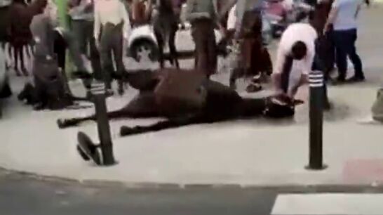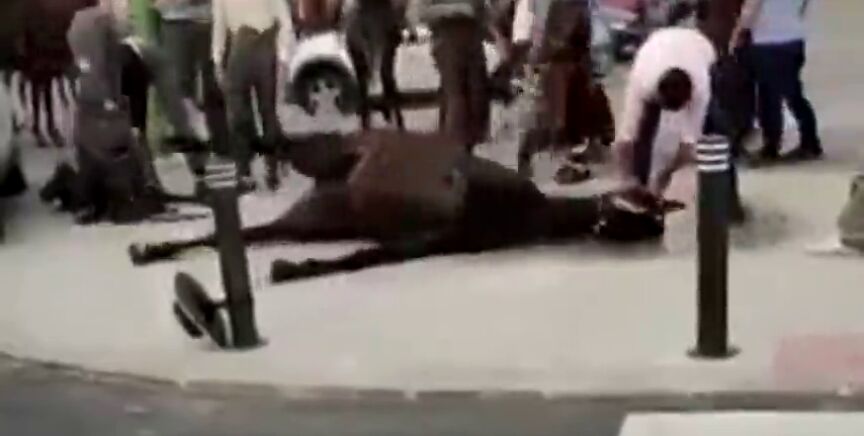 En las impactantes imágenes se puede ver un caballo tendido en el suelo mientras convulsiona.
