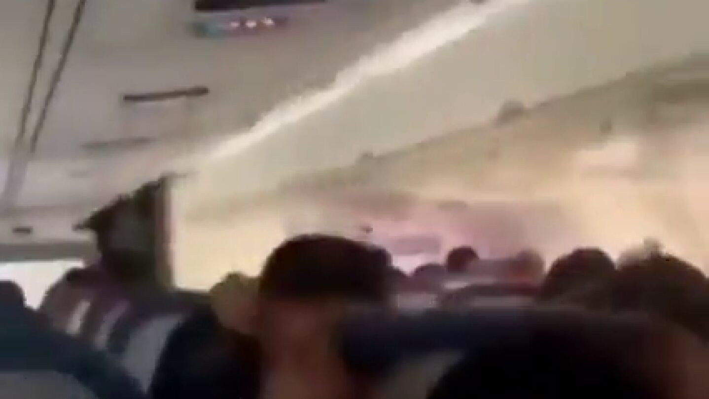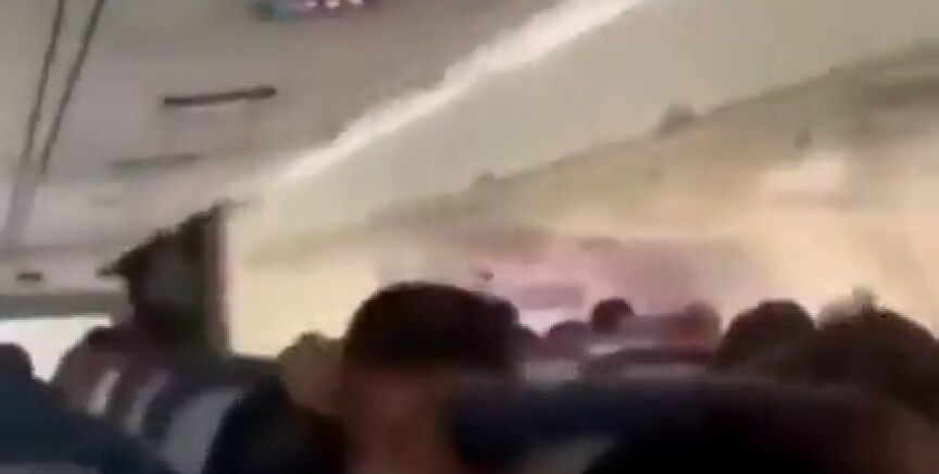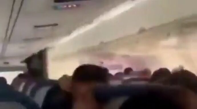 Un pasajero graba desde el interior el angustioso momento en el que su avión aterriza sin tren de aterrizaje delantero