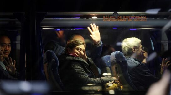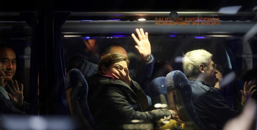 Los miembros de la tripulación han sido los primeros que han comenzado a salir de la sala de la Terminal 1 habilitada para los ocupantes de este vuelo. Rodeados de un operativo policial y de personal del aeropuerto, los pasajeros abandonaban en pequeños grupos la sala, donde se han podido encontrar con sus familiares.