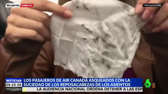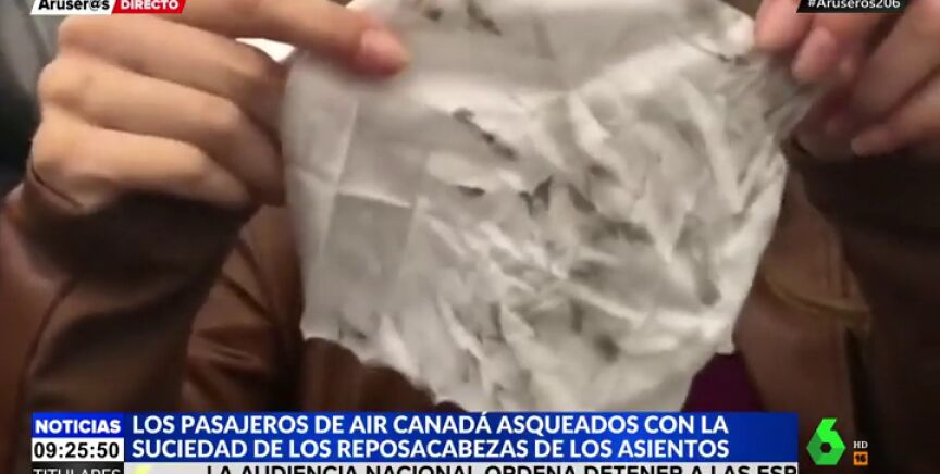 Los pasajeros de Air Canada han difundido un vídeo en el que enseñan cómo limpian con toallitas húmedas el reposacabezas del asiento del avión. La toalla queda completamente negra debido a la suciedad que tiene en la superficie.