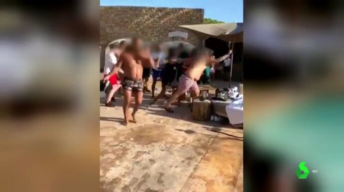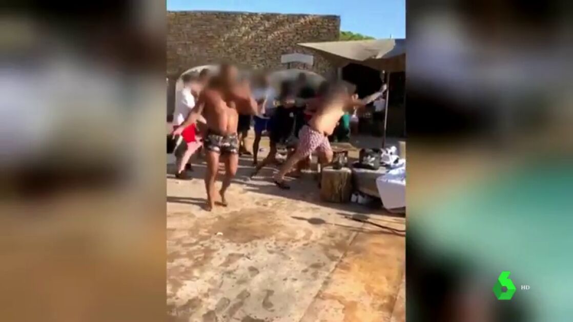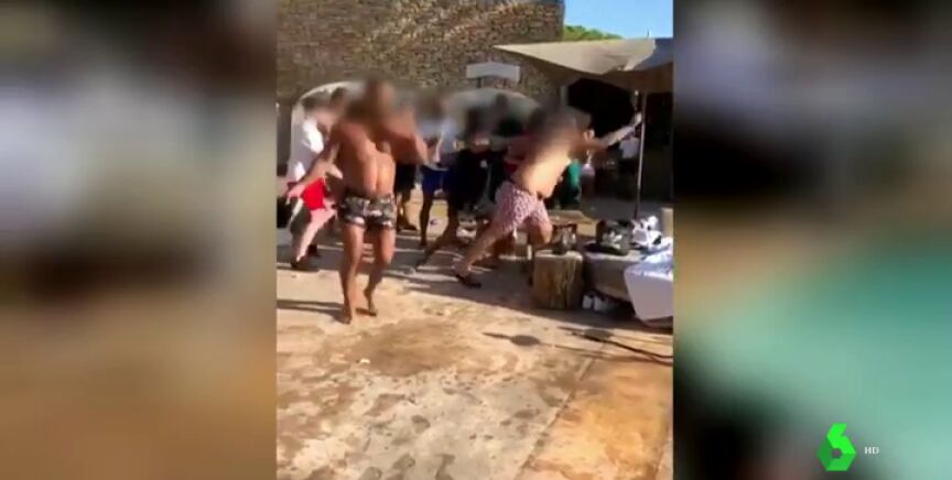 Varias personas se enzarzan en una pelea junto a la piscina del local. Se lanzan botellas y otros objetos a pocos metros del resto de clientes.
