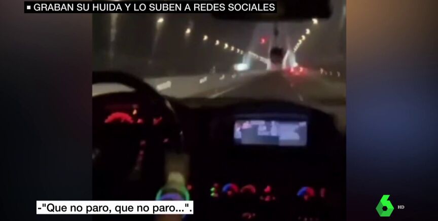 Al conductor se le ve confiado, incluso pone reguetón. "Que no paro, que no paro", dice, mientras otro de ellos apunta: "Nos van a pegar una paliza, loco...". Tratan de improvisar algún plan: "Metete ahí en el río San Pedro, y aparca el coche". Pero el conductor responde: "Tranquilo, que esto lo pongo yo a 250 (km/h). Los compañeros alaban la pericia al volante del conductor: "¡Vamos ahí, Manuel!".