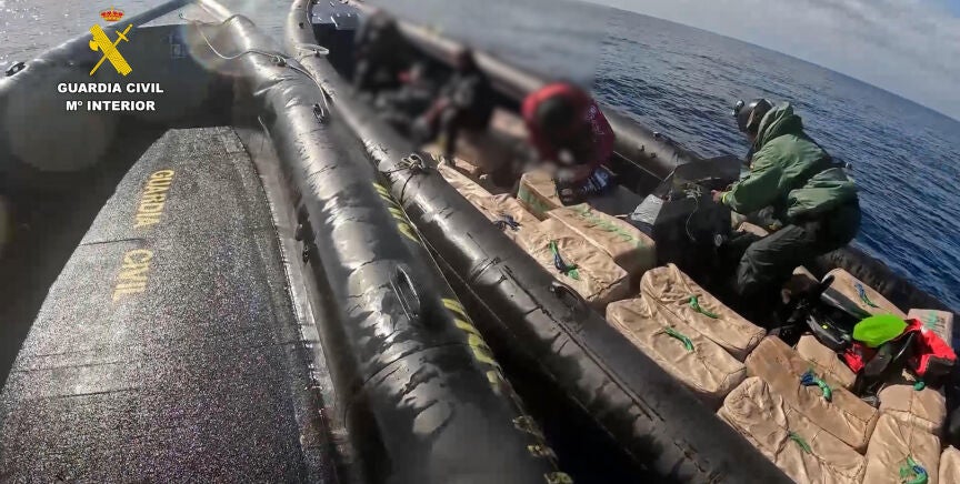 Finalmente, la Guardia Civil logró alcanzar la embarcación, cortarle el paso y obligarla a detenerse. Una vez a bordo, los agentes detuvieron a sus cuatro ocupantes e intervinieron un total de 100 fardos que contenían hachís, con un peso aproximado de cuatro toneladas.