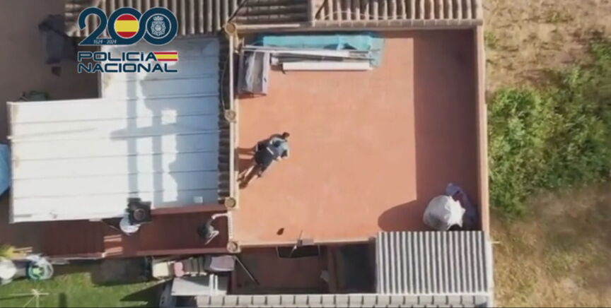 La Policía Nacional de La Línea de la Concepción (Cádiz) ha detenido a un individuo sobre el que pesaba una orden judicial de búsqueda, detención e ingreso en prisión por un delito de homicidio. El arresto se ha producido después de que el hombre intentase huir por el tejado, una fuga que ha sido grabada desde el aire por la Policía Nacional.