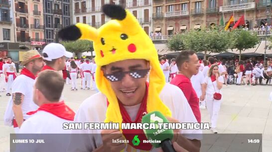 "Pikachu, ¡Pikachuuuu!", grita uno de los asistentes a las fiestas de San Fermín, entrevistado por el equipo de laSexta Noticias, moviendo las orejas de su gorro de Pikachu. Y no es el único en lucir a este pokémon en su cabeza. "Esto sirve para no mojarte y para cuando tienes un poco el pelo mal, te lo tapa", afirma otra chica que se ha sumado a esta tendencia.