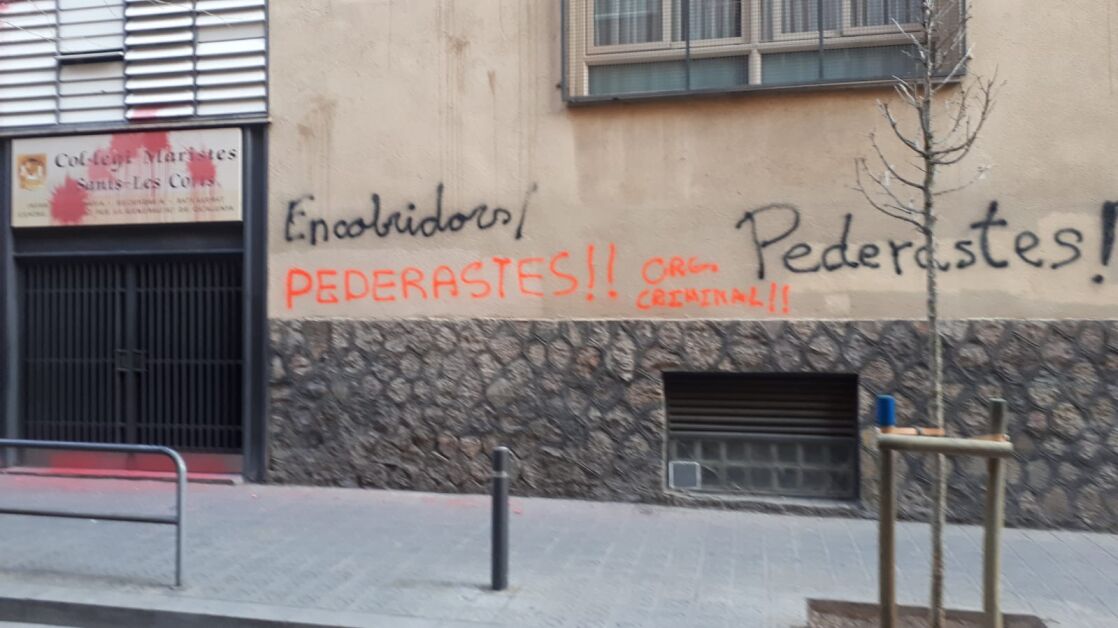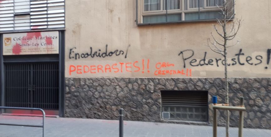 Pintadas de "pederastas" en el colegio de los Maristas de Sants el día que empieza el juicio por abusos sexuales
