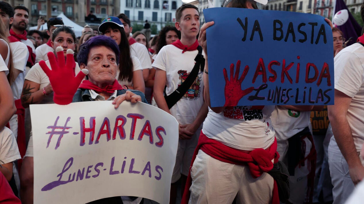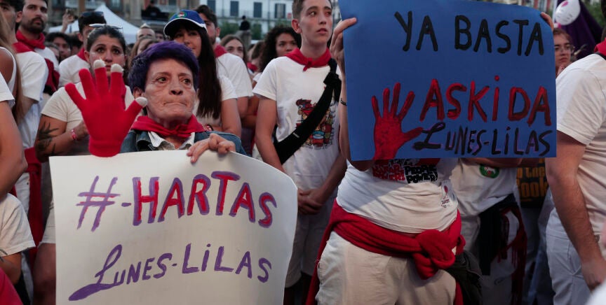 En tan solo dos días, ya se han registrado al menos nueve agresiones sexuales en Sanfermines. Los presuntos autores ya han sido detenido y la Policía investiga estos hechos. En respuesta de las agresiones, miles de personas se han concentrado este lunes en la Plaza del Castillo.