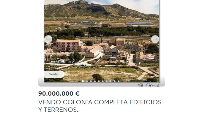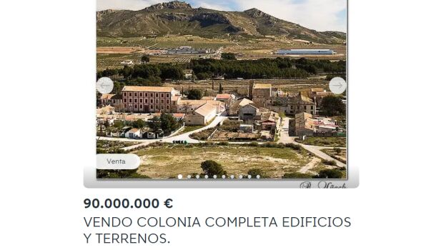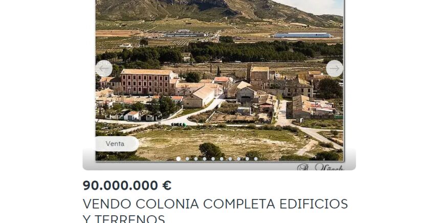 "Vendo colonia completa, edificios y terrenos". Así reza el anuncio de Wallapopcon el que un particular ha puesto a la venta la colonia de Santa Eulalia, situada la provincia de Alicante, por 90 millones de euros.