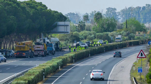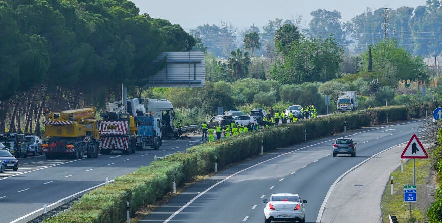El subdelegado del Gobierno en Sevilla, Francisco Toscano, se ha pronunciado en este sentido durante una comparecencia en la que ha confirmado que los fallecidos son seis, entre ellos dos guardias civiles, y que en total hay cinco heridos. Según ha explicado, ahora mismo lo ocurrido se investiga como un "siniestro vial por causa accidental", que podría "ser una distracción, un destello" o que el conductor "se haya despistado".