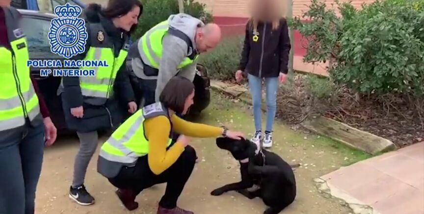 Primeras imágenes de la perra Pocahontas tras ser rescatada por la Policía de la casa del entrenador