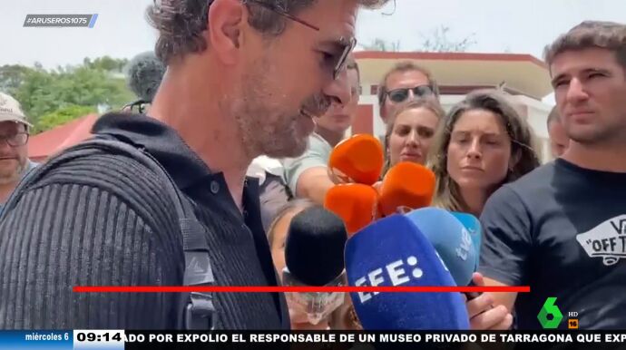 Ya en el aeropuerto de Barajas, en Madrid,el actor rompió su silencio y habló por primera vez sobre la acusación de asesinato que recae sobre su hijo. El actor aseguró que tiene "total confianza y respeto por las autoridades de Tailandia", además de sentir "el revuelo que se ha creado, el cual quiero dejar claro que no viene incitado ni por mí ni por mi familia".