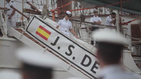 La princesa Leonor llega a Marín y termina su formación a bordo del Juan Sebastián de Elcano