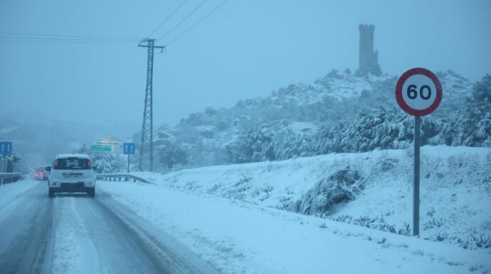En Extremadura nueve carreteras en la provincia de Cáceres y una en la de Badajoz, están cortadas o sufren restricciones de tráfico por la presencia de nieve en la calzada o por anegamiento debido a la lluvia.