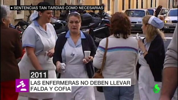 Aunque parezca mentira, obligar a las enfermeras a ir con uniformes con falda no fue considerado "discriminatorio" hasta hace menos de siete años, una sentencia pionera que recuerda Carmen: "Ellas se sentían agraviadas y discriminadas con respecto al uniforme que utilizaban sus compañeros masculinos".