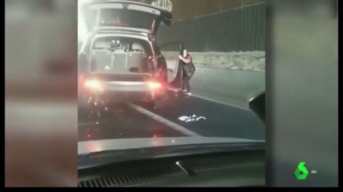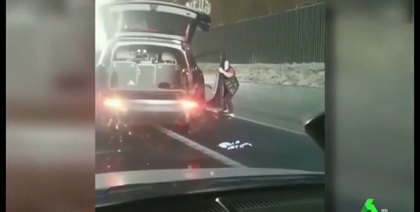Puñetazos, patadas, incluso intentan arrancar la puerta del coche. Es la imagen de una agresión en plena M-40, en Madrid.