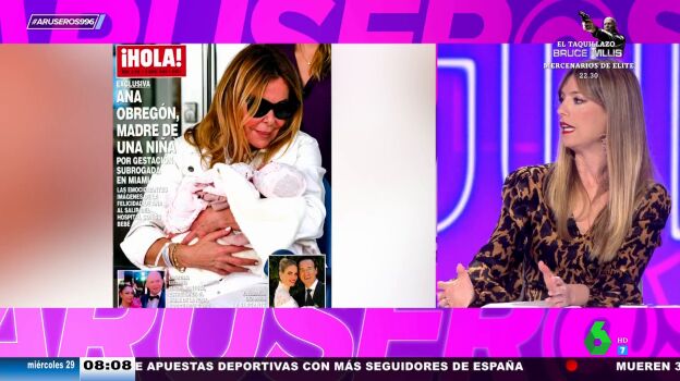 La artista y 'celebrity' madrileña Ana Obregón ha vuelto a estar en el foco informativo después de aparecer en una imagen saliendo de una clínica de vientres de alquilerde Miami con su hija recién nacida. Lo ha hecho, además, en una silla de ruedas con una banderilla con las palabras 'Mother Baby Chariot' (carrito para madre y bebé, en inglés), empujada por una enfermera.