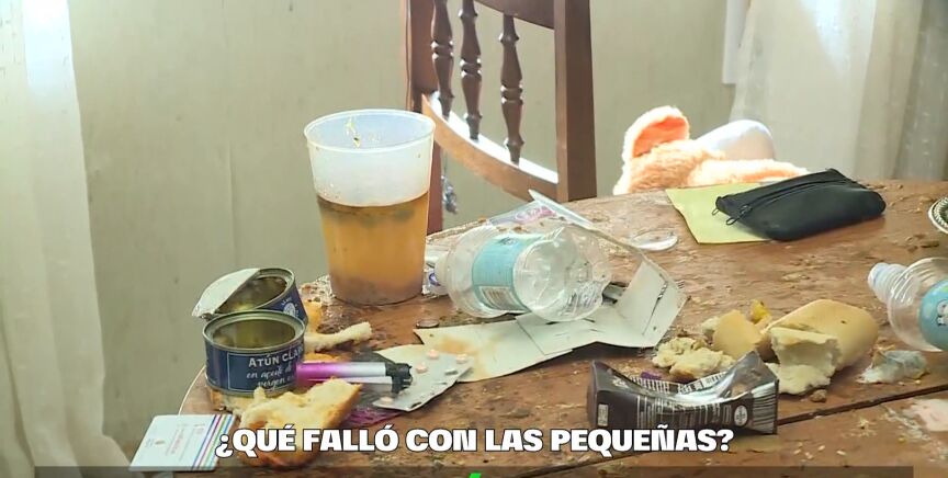 La pregunta es cómo y cuánto han estado las menores viviendo entre basura y durmiendo en camas sin sábanas y con mantas sucias. La madre de las menores acusa a su marido y dice que este desastre es solo de un fin de semana en el que ella salió a buscar trabajo. Afirma además que cuando volvió, la policía ya se había llevado a las niñas y su marido intentó agredirla.