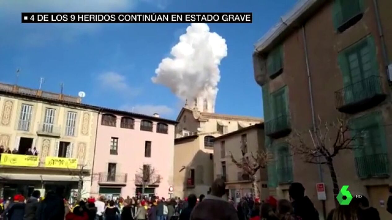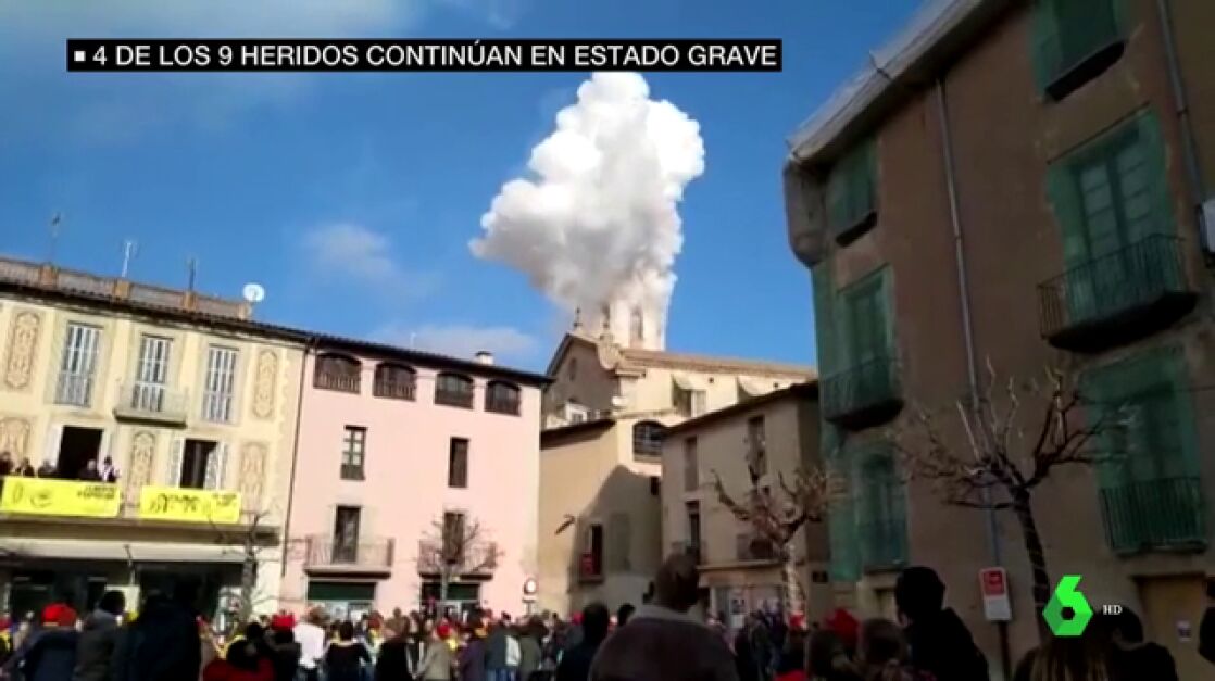 El alcalde de Centelles asegura que todos los permisos de la fiesta del Pi, en la que una explosión dejó nueve heridos, estaban en regla y que los trabucaires cuentan con una amplia experiencia. Los bomberos creen que un zurrón con pólvora podría haber sido el origen. Cuatro heridos continúan en estado grave.