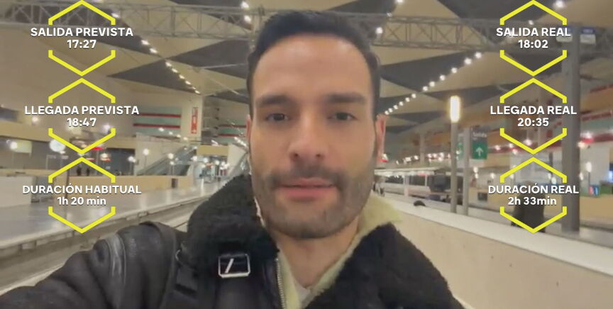 Poco después, la revisora comunicó a los pasajeros que se habían añadido 10 minutos más al trayecto y que era muy probable que el retraso continuara aumentando. En ese momento, la previsión ya apuntaba a un retraso cercano a los 50 minutos.