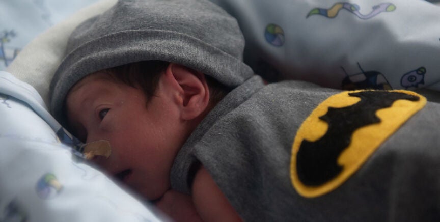Los recién nacidos de la UCI del Hospital Clínic se convierten en superhéroes para celebrar el Carnaval