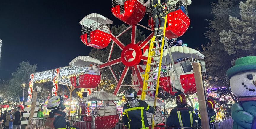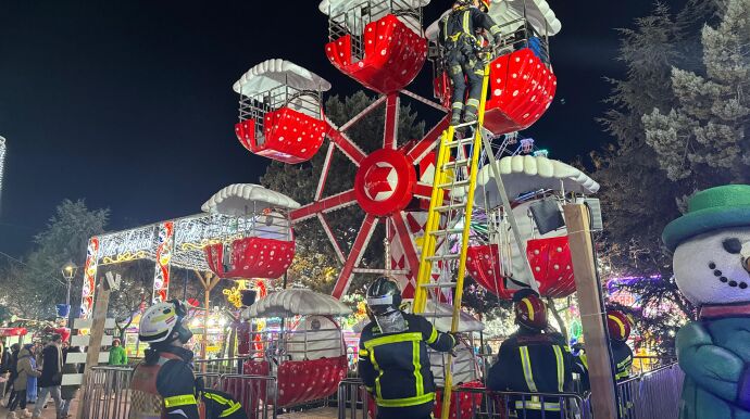 Rescatados cuatro menores atrapados en una cubeta de una noria infantil de Móstoles