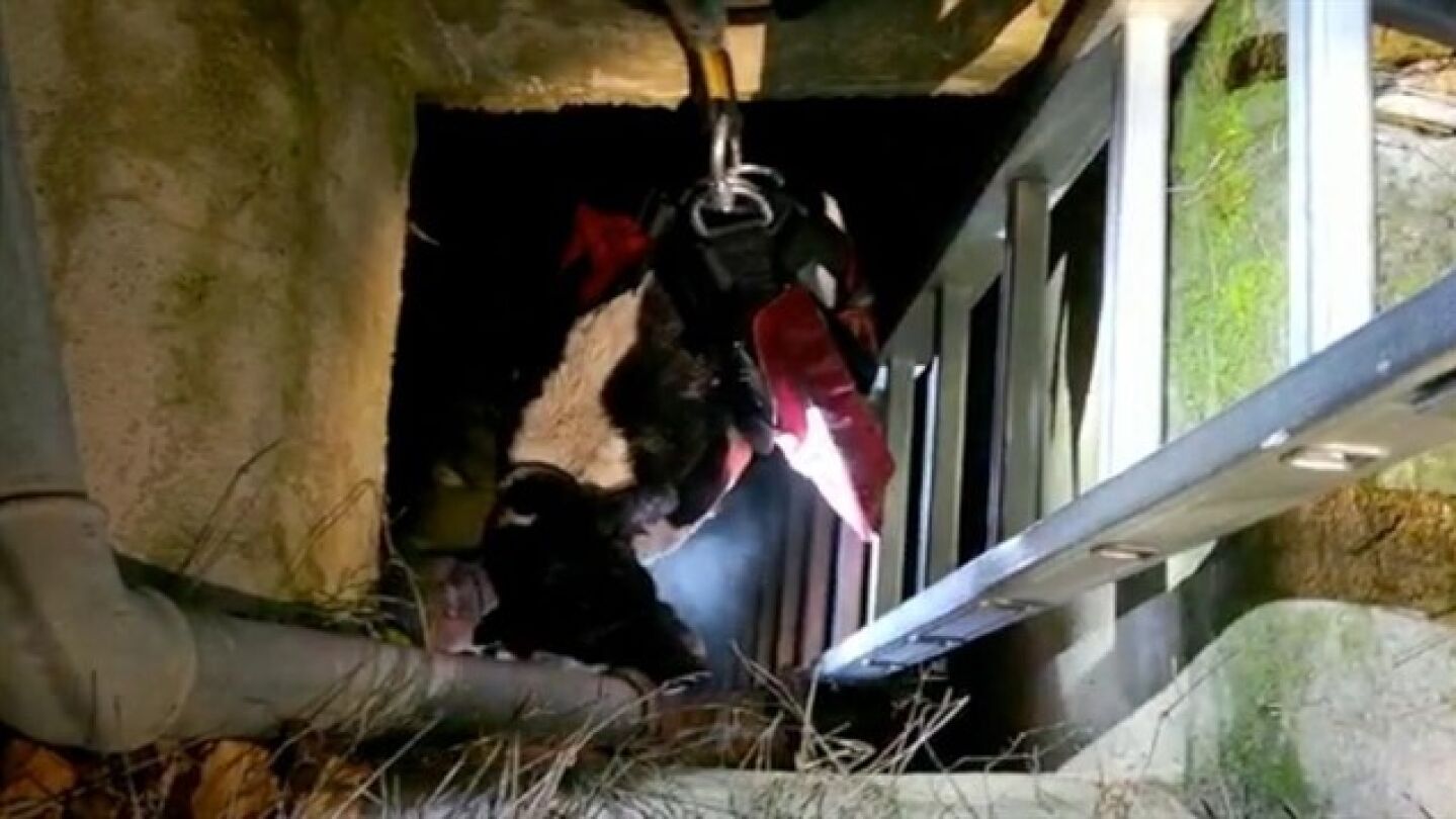 Efectivos de bomberos han rescatado a uncachorro que hacía días que había caído en un pozo de cinco metros de profundidad en el camino Conejeras de Sax, Alicante.