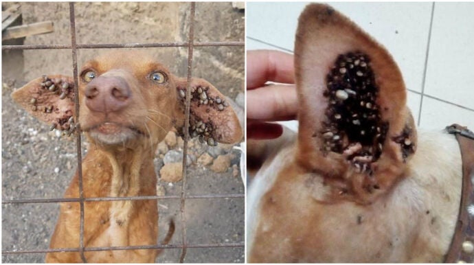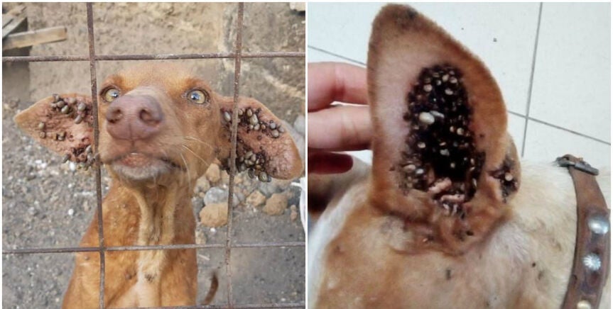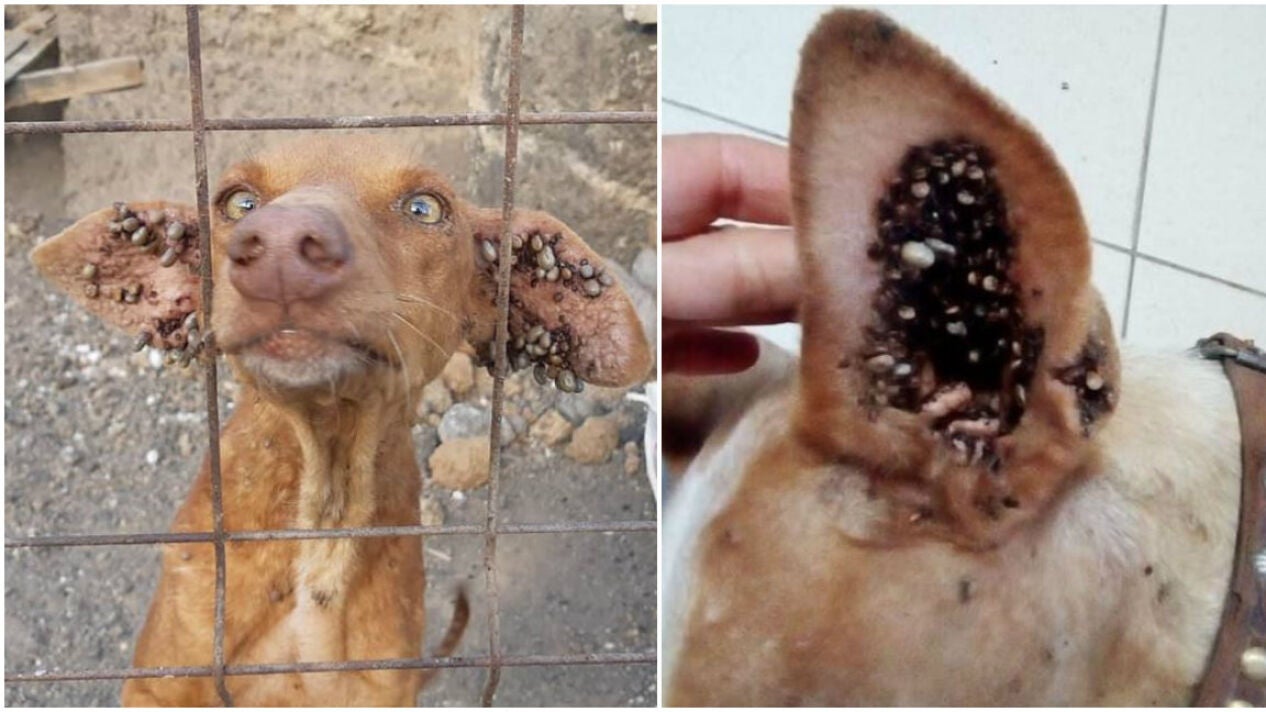 Rescatan a cinco perros abandonados en una cueva en un estado deplorable: estaban llenos de garrapatas y desnutridos