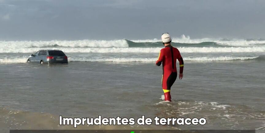 El vehículo, según testigos presenciales y marcas en la arena, aparentemente había sido utilizado para realizar maniobras peligrosas en la playa, lo que llevó a su posterior inmersión en el mar.