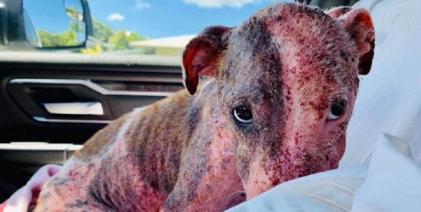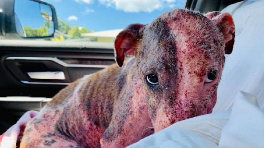 El animal, que estaba extremadamente malherido y deshidratado, había sido atacado con un machetey había perdido el 90% de su pelo por culpa de varias quemaduras. Según ha explicado la ONG en su página de Facebook, la perra fue conducida rápidamente hasta una clínica veterinaria local, la Aloha Affordable Veterinary Services, donde recibió asistencia médica y le hicieron análisis de sangre.