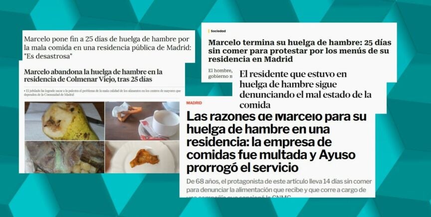 Los detalles Marcelo, de 68 años, ha estado 25 días sin comer por la pésima calidad de la comida de la residencia de Colmenar Viejo. El hombre denuncia que desde que ha recibido represalias por parte de la dirección