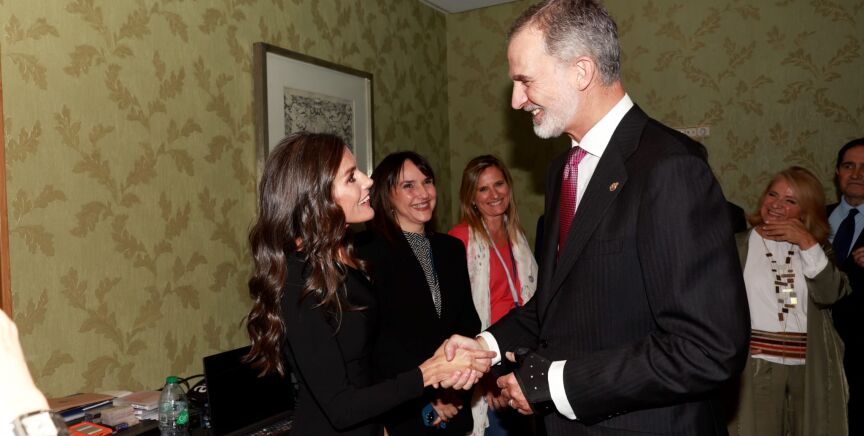 Dos décadas más tarde, en el mismo escenario, Felipe VI y Letizia han revivido ese saludo. Ahora lo han hecho como reyes de España y sin ningún tipo de disimulo, entre las risas de los presentes, como puede observarse en el vídeo situado sobre estas líneas.