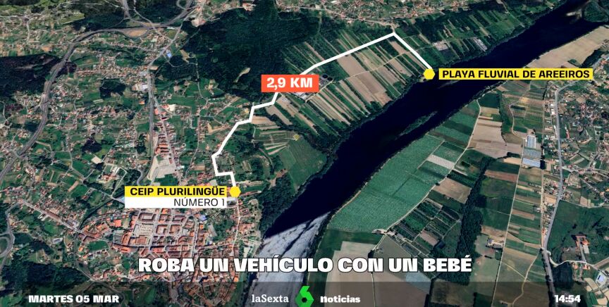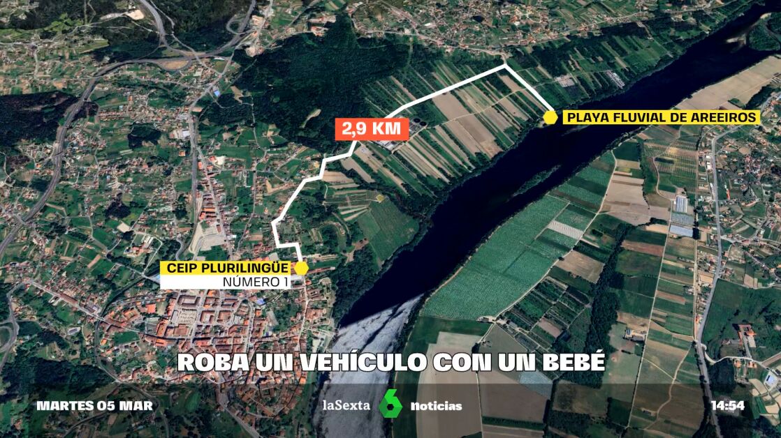 La Policia Local, pocas horas después, interceptó el vehículo con el conductor y el bebé a bordo en Veiga do Louro, a pocos kilómetros del colegio. El niño se encontraba, aparentemente, en buen estado, pero fue trasladado al hospital.