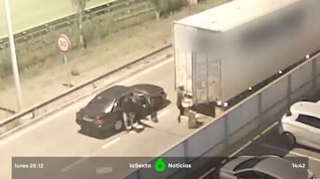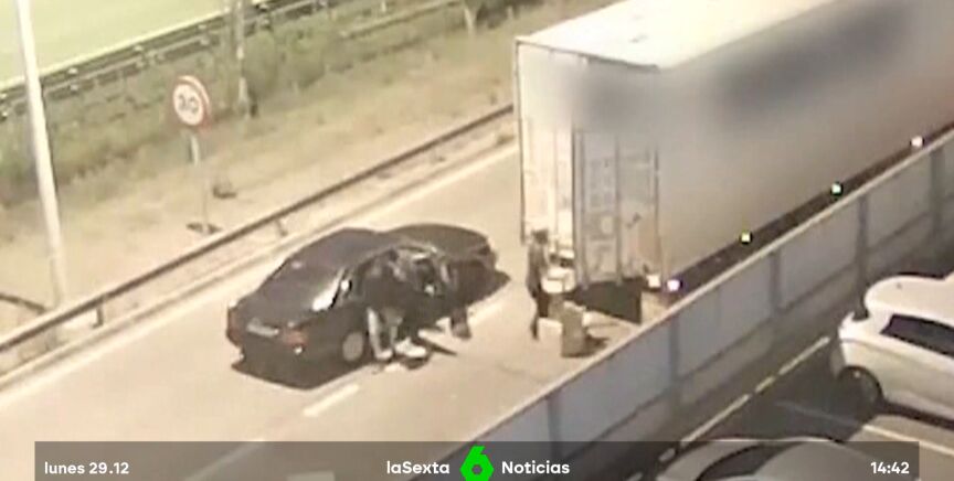 El robo en las autopistas es una práctica cada vez más habitual en las áreas de servicio de las autovías y autopistas catalanas. Los asaltantes se bajan del coche y, en cuestión de minutos, desvalijan camiones de gran tonelaje, como el que se muestra en este vídeo.