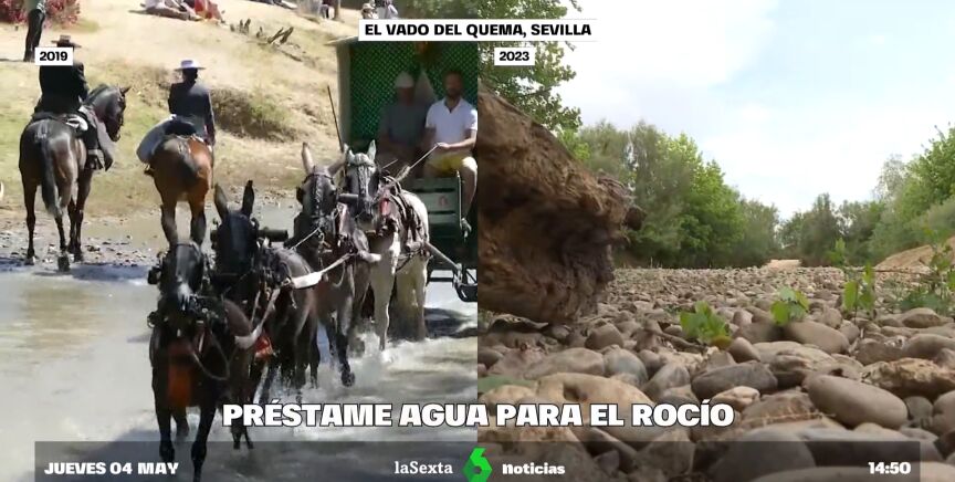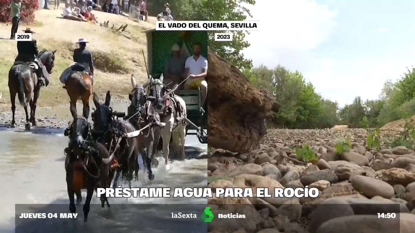 El Vado del Quema, el punto de bautismo del Rocío, está completamente seco. La Junta de Andalucía ha pedido que se desembalse agua para regadíos y que se haga, a su vez, durante la romería. El objetivo es que que se llene para el tradicional bautismo y paso de los peregrinos del Rocío.