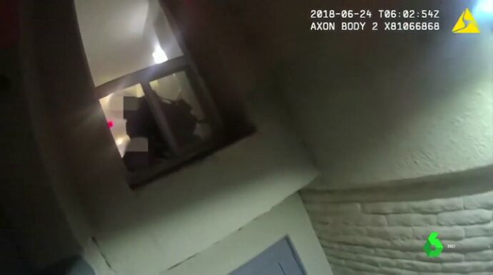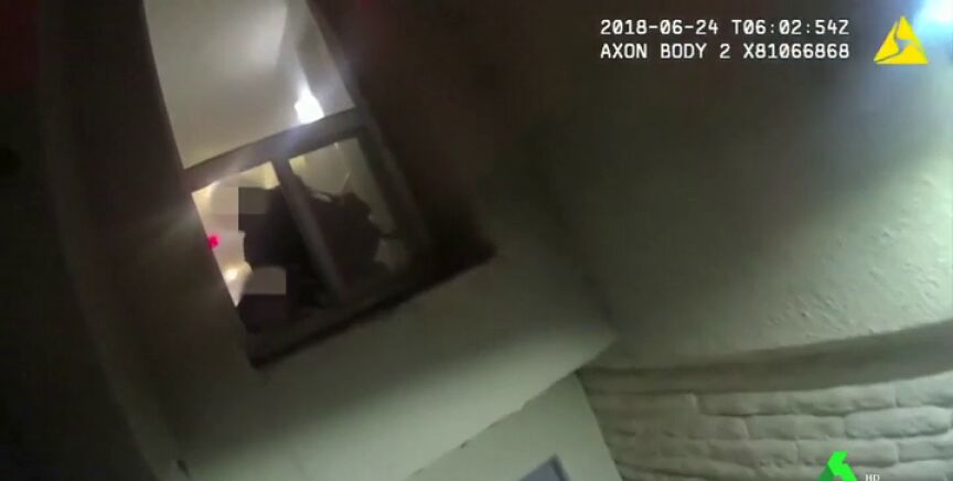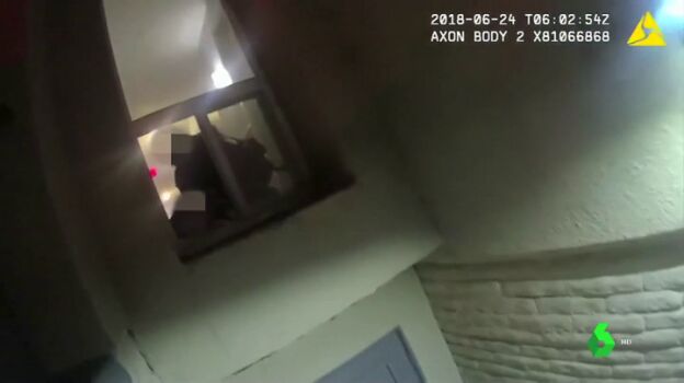 Las impactantes imágenes muestran el momento en el que, tras abrir la puerta, varios disparos se dirigen a los agentes hasta que finalmente uno resulta herido.