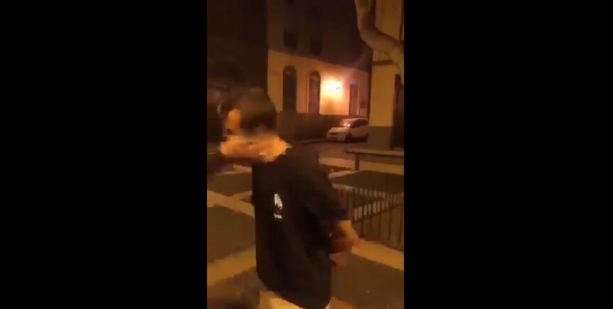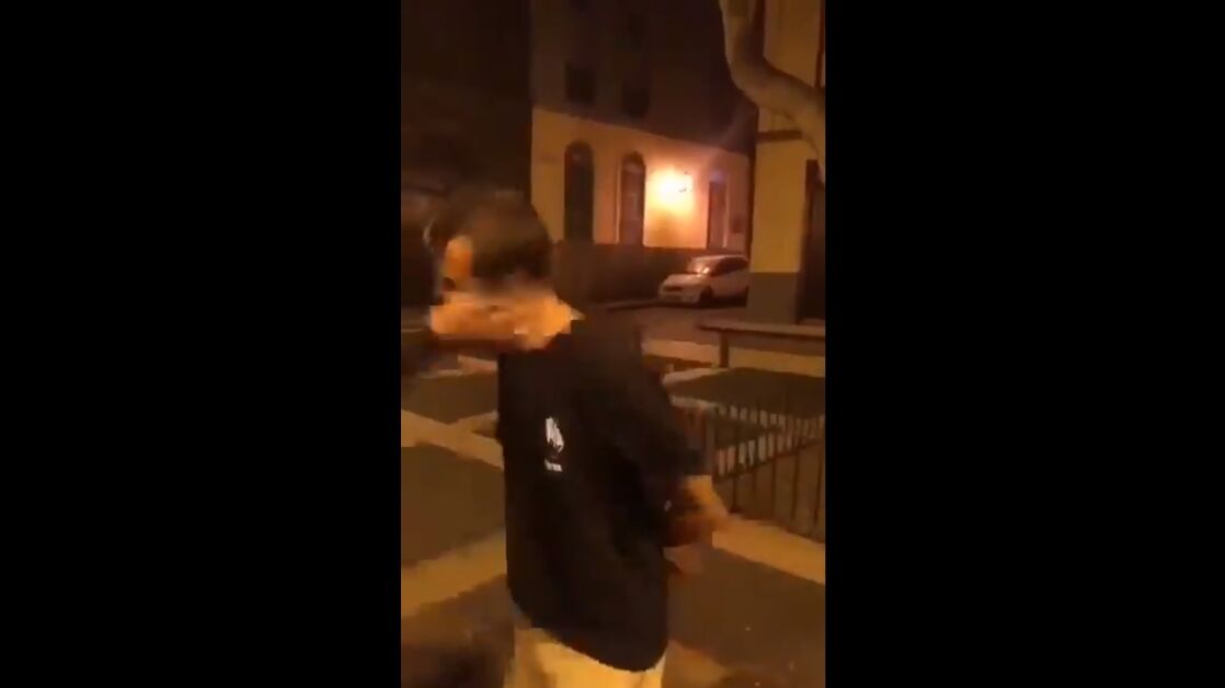 En el vídeo grabado por los propios agresores, se observa cómo golpean al joven en la cara con gran fuerza. El impacto es tal que el chico cae al suelo, golpeándose la cabeza contra un banco de piedra al caer y quedando tendido, inerte, en el suelo.