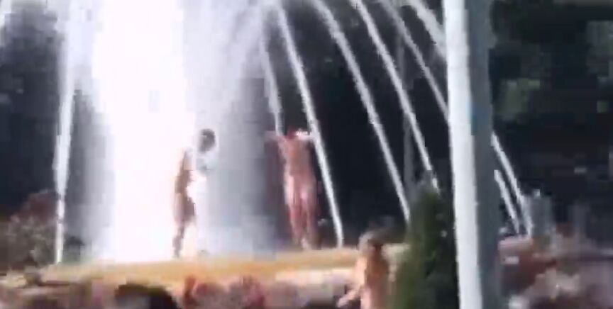 En el vídeo que acompaña a estas líneas, difundido por el usuario de Twitter @koldo49, se puede apreciar cómo los jóvenes se bañaban en el interior de la fuente hasta que ha llegado la Policía.