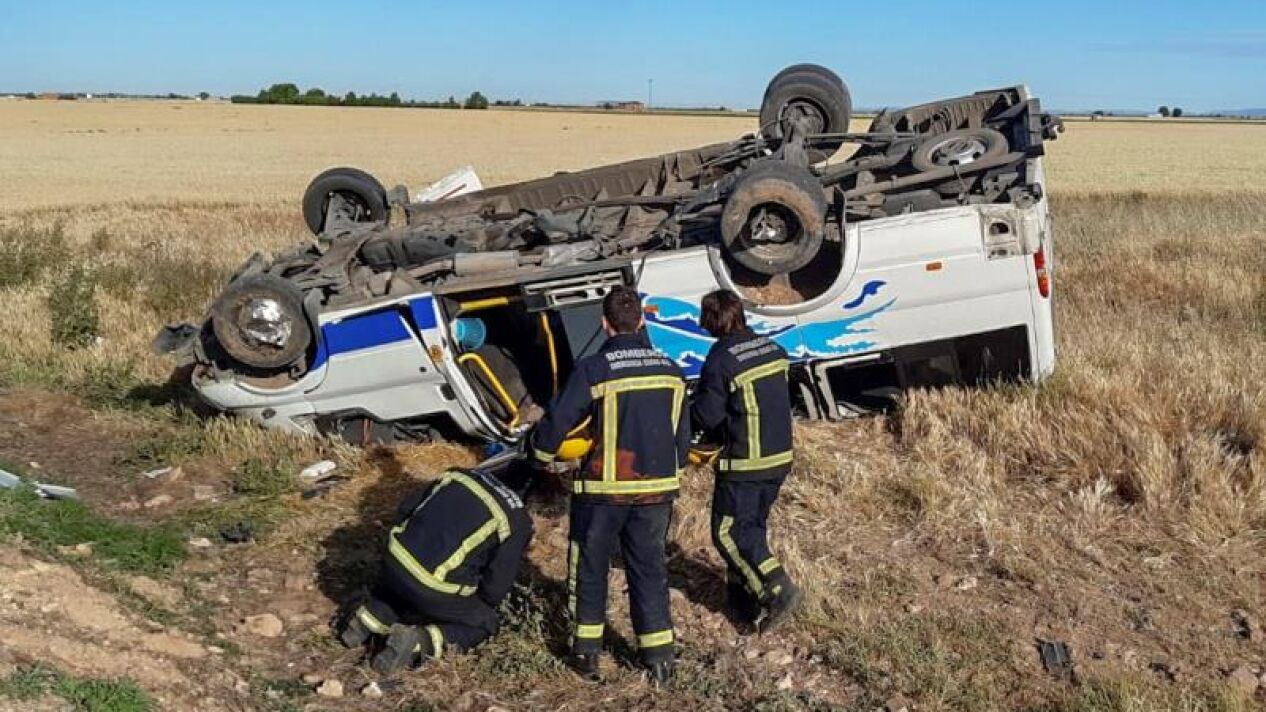 Un autobús escolar en el que viajaban doce adolescentes y dos adultos ha volcado sobre las 8:01 horas de este lunes en la CM-4114, en el término municipal de Daimiel (Ciudad Real), a consecuencia de lo cual cinco menores y la cuidadora han resultado heridos leves.