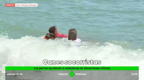 Desde que arrancó la temporada estival, estos pecualiares miembros del equipo de salvamento trabajan en el arenal malagueño de Torre del Mar. Se trata de la primera unidad canina de emergencia, que en los próximos años se espera que no sea la única.