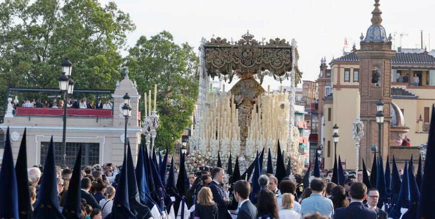 El ambiente en la ciudad es de emoción, aunque con cierta complicación por las multitudes. "Si quieres ir de un sitio a otro no vas a poder pasar porque está la gente quieta ahí esperando la cofradía", explica un joven sevillano.
