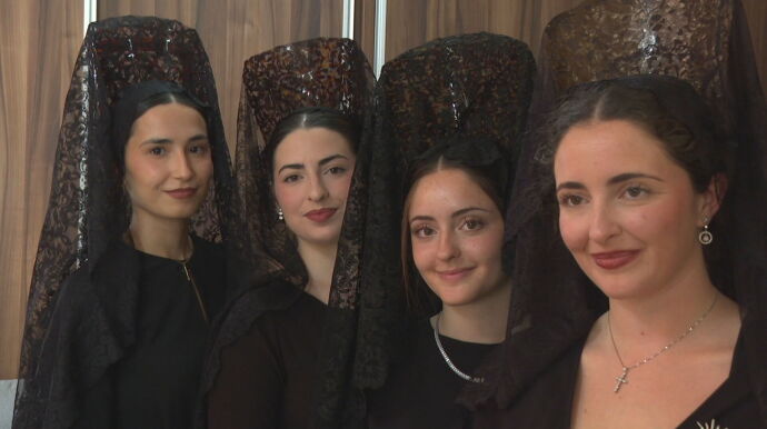 Los vestidos negros por debajo de la rodilla, las medias a juego, el moño bajo, la peina y por supuesto, la mantilla, es una vestimenta que suele pasar de generación en generación propia de este Jueves Santo, que simboliza el luto por el Cristo Crucificado. "Los complementos y todo es algo que normalmente se hereda", señala una joven al respecto.