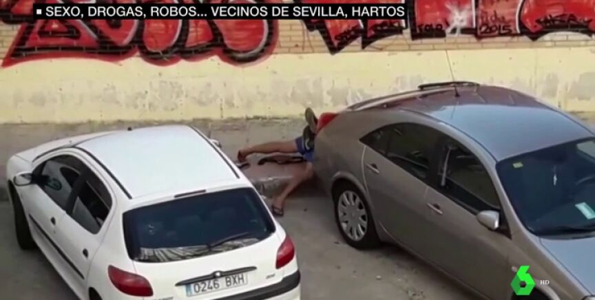 Una mujer orina en la calle a plena luz del día. Minutos antes, mantiene relaciones sexuales con un hombre en mitad de la acera. Los vecinos del barrio sevillano de La Macarena, hartos, grabaron la escena, que, denuncian, es solo un ejemplo más de lo que se encuentran cada día.