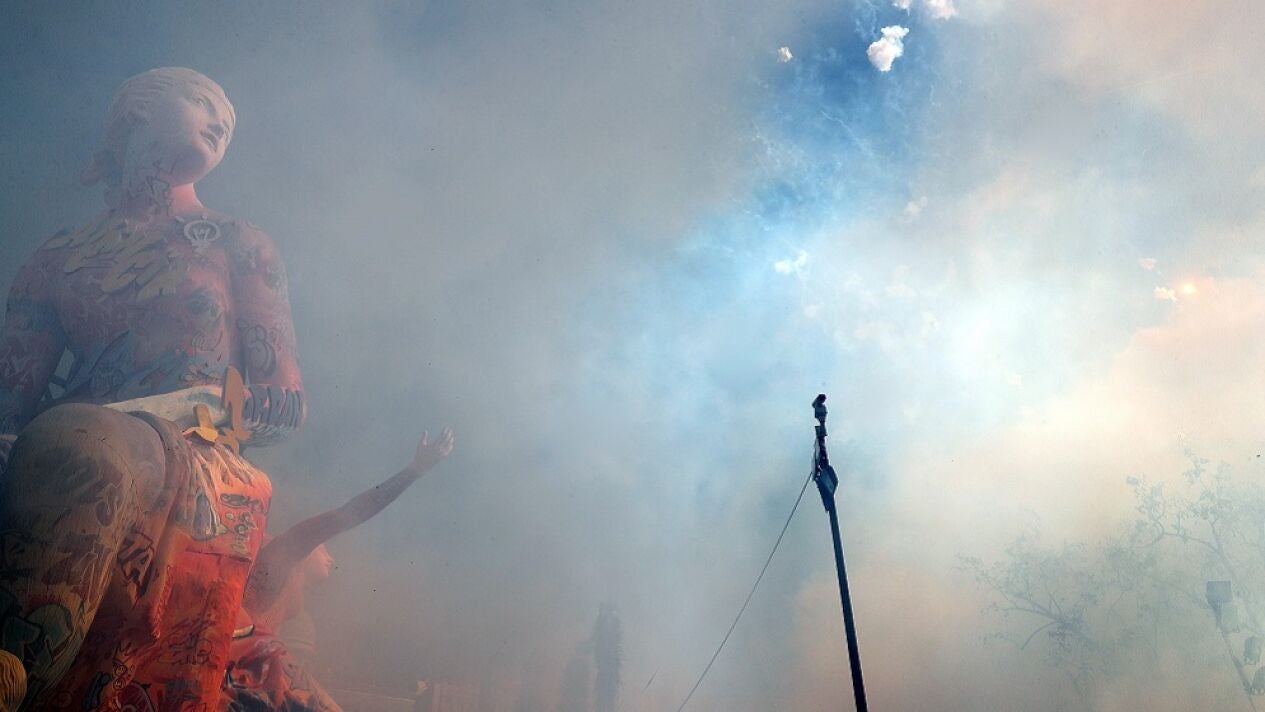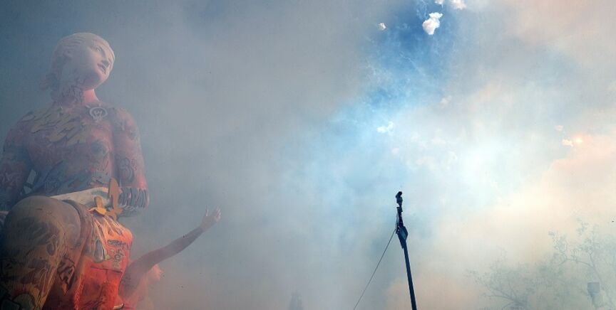 Siete heridos al explotar un petardo durante la mascletà de una comisión fallera en Valencia
