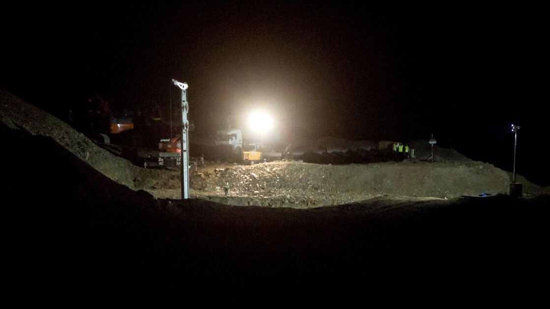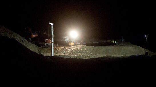 El tiempo sigue corriendo en Totalán. El túnel paralelo para el rescate de Julen debe alcanzar 60 metros y después intervendrá el equipo minero haciendo una galería horizontal.