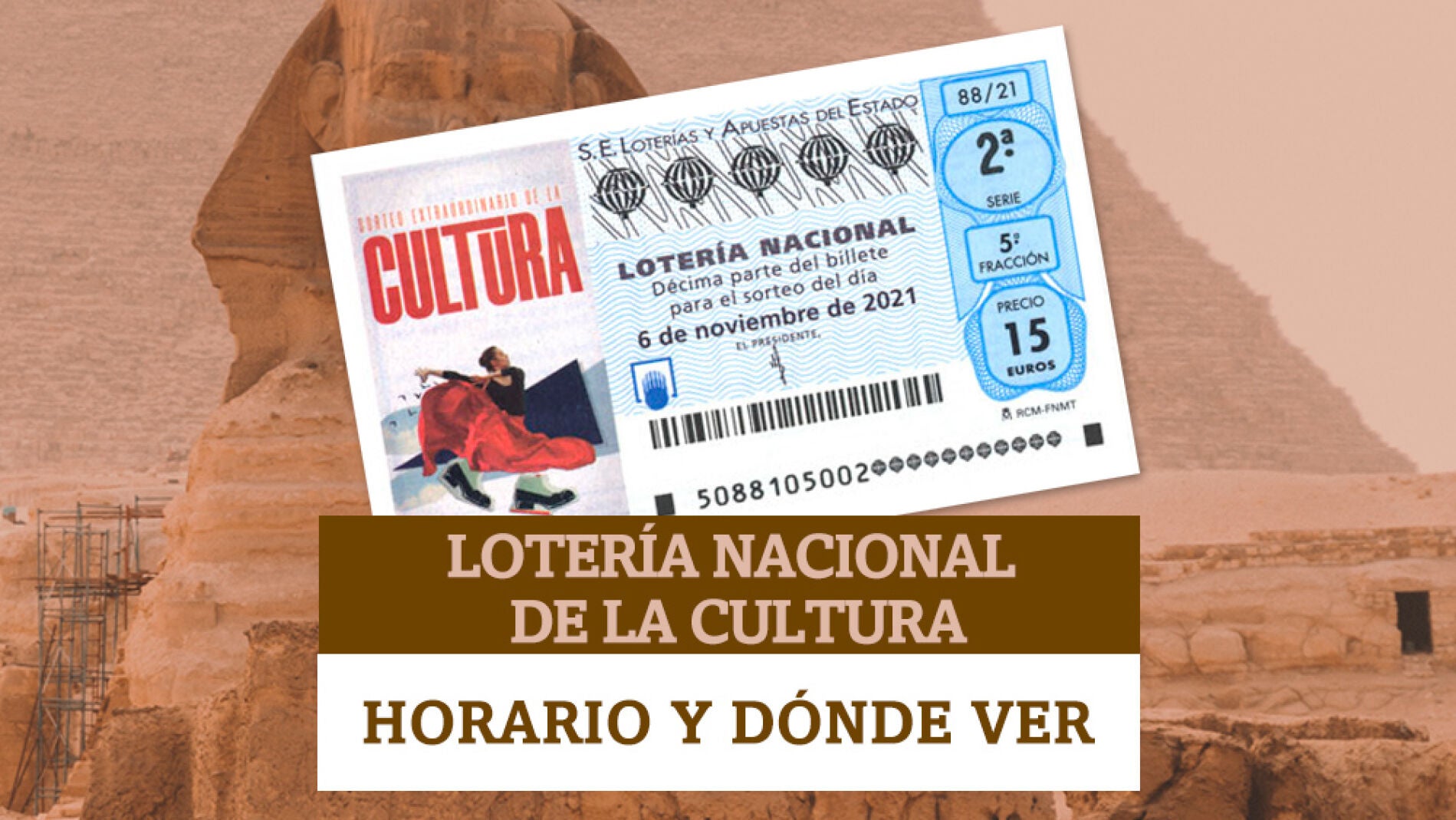 El Sorteo Extraordinario de la Cultura es el juego especial mensual de Lotería Nacional correspondiente a noviembre. En el mes de octubre, la lotería del día 9 se dedicó al Día de la Hispanidad, tres jornadas antes de la festividad nacional. En esa ocasión, el premio principal de 15 millones de euros fue a parar a la fracción 1 de la serie 3 del número 42122. El resto de fracciones obtuvieron 150.000 euros por décimo.